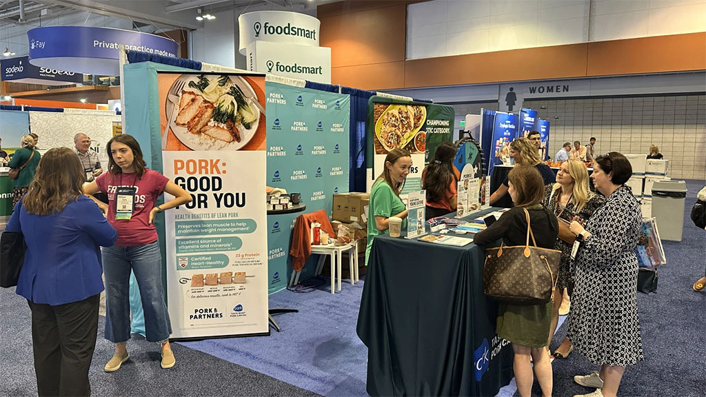 Hawkins se unió a Emily Krause, directora de iniciativas de nutrición, salud y bienestar de la Junta Nacional de Cerdos, en la conferencia más grande del país para dietistas registrados y profesionales de la nutrición. Este evento atrajo a 8000 asistentes a Nashville, Tennessee, para una inmersión profunda de tres días en todo lo relacionado con la ciencia de la nutrición, la innovación alimentaria y la salud.